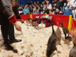 … war das Motto in unserer Kita in der Woche vom 13.10. – 17.10.2025. Die Kinder staunten nicht schlecht, als sie am Montag ein richtiges Zirkuszelt auf unserem Spielplatz entdeckten und nicht nur das: begrüßt wurden die Kinder und Eltern jeden Morgen bereits am Eingang von schnatternden Enten. Auf dem Spielplatz konnten die Kinder zu den Enten auch noch Tauben, Frettchen und Ziegen bestaunen. Eine Woche lang hieß es, jeden Tag proben, proben, proben. Am Ende der Woche wartete dann auf alle Eltern die große Aufführung im Zirkus Benjamin. Alle Kinder konnten nun endlich ihren Eltern zeigen, was sie die ganze Woche lang einstudiert haben. Mit glanzvollen Kostümen, viel Aufregung und voller Vorfreude betraten die kleinen großen Künstler nun die große Manege und wurden vom Publikum gefeiert. Es war für uns alle eine aufregende Woche mit vielen schönen Momenten. Die Kinder zeigten Mut, haben viel Spaß und wuchsen über sich hinaus.